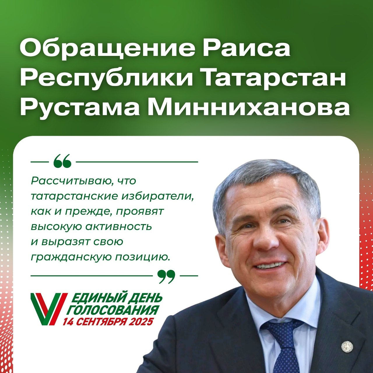 💬 Раис Республики Татарстан Рустам Нургалиевич Минниханов обратился к татарстанцам в преддверии выборов